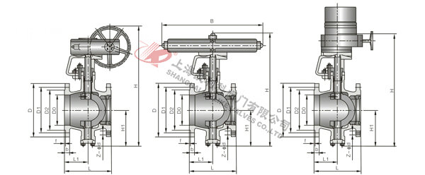 4、PQ940F、PQ940H、PQ940Y电动偏心半球阀主要根据剖面、长度、高度、外形等作出说明。
