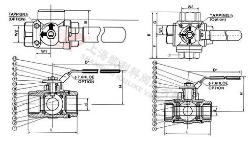 Q14F/Q15F高平台三通球阀有T型和L型。T型能使三条正交的管道相互联通和切断第三条通道,起分流、合流作用。L型只能连接相互正交的两条管道,不能同时保持第三条管道的相互连通,只起分配作用。