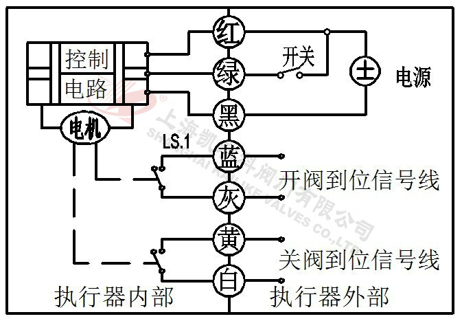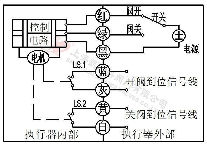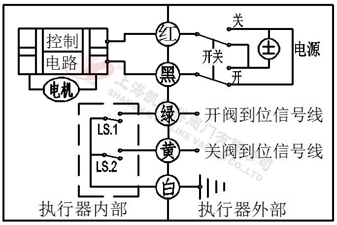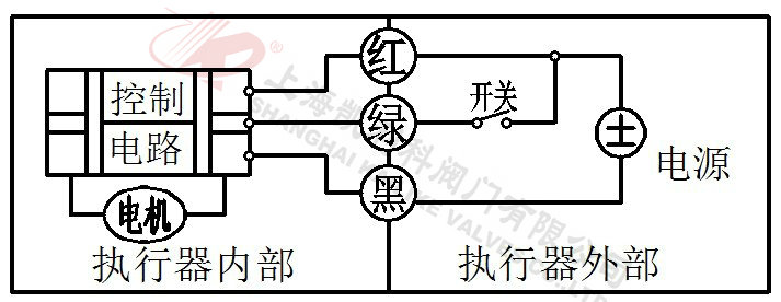 3、当绿线开关断开,阀门闭合,到位后执行器内部自动断电。