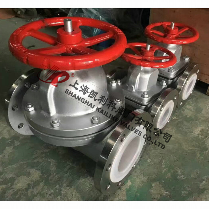 G41F46不锈钢衬氟隔膜阀将阀体下部内腔与阀盖内腔隔开,并与之形成直流通道,使隔膜上部的阀杆、阀瓣等内件与介质完全隔离,省去填料密封结构,介质的内漏和外漏可同时避免。表面均匀包覆一层FEP。阀体通道内表面光滑,流体阻力小,CV值高,流通能力强,扭矩适中,采用四级密封结构并在密封面外配以耐温抗老化的SI橡胶的弹性衬垫阀座,完全达到介质的零泄漏。