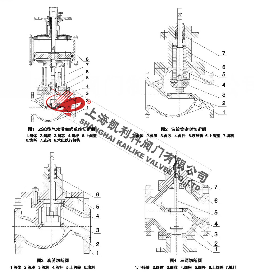 ZSQP气动活塞式切断阀由活塞式气动执行机构与切断阀组成。气动活塞式切断阀采用直通单座型式,DN20以内阀芯为单导向结构,可直接采用精小型阀体。DN25-200阀芯为双导向结构,气动活塞式切断阀具有结构简单,操作方便,使用可靠,快速开闭等特点。