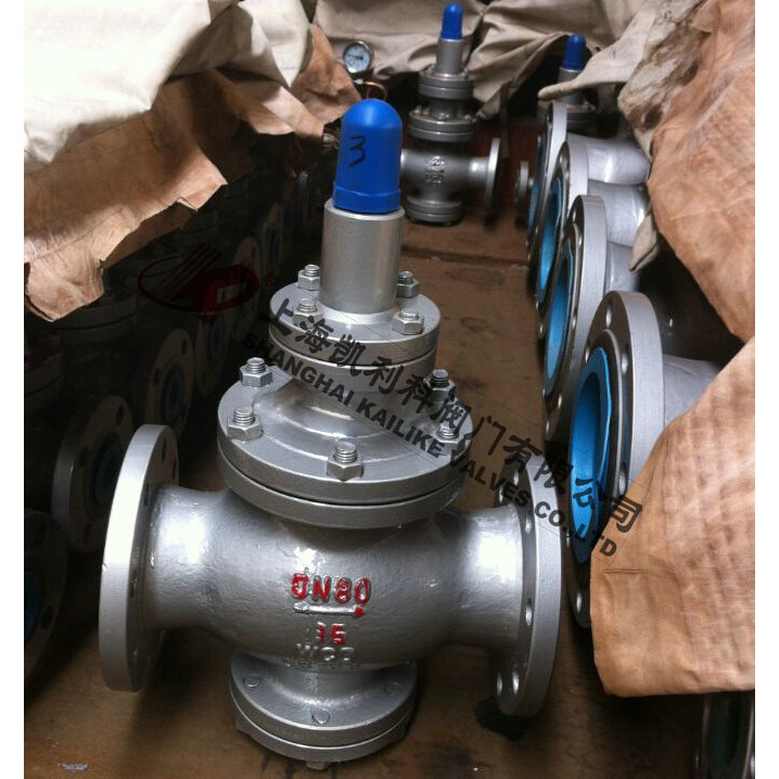 Y43H锅炉蒸汽减压阀本系列减压阀属于先导活塞式减压阀。由主阀和导阀两部分组成。主阀主要由阀座、主阀盘、活塞、弹簧等零件组成。导阀主要由阀座、阀瓣、膜片、弹簧、调节弹簧等零件组成。通过调节调节弹簧压力设定出口压力、利用膜片传感出口压力变化,通过导阀启闭驱动活塞调节主阀节流部位过流面积的大小,实现减压稳压功能。