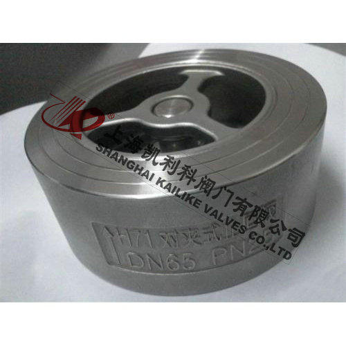 H71H、H71W不锈钢对夹式止回阀该阀由阀体、阀瓣、弹簧等组成,水平或垂直安装于管路系统,防止介质倒流,具有结构短、体积小、质量轻;阀瓣关闭快速,水锤压力小;流道通畅,流体阻力小;动作灵敏,密封性能好。