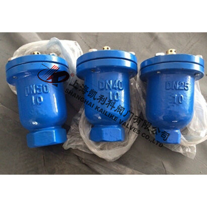 QB1单口自动排气阀主要由阀体、阀门、上盖、阀杆、浮球、排气嘴等组成。当需要排出管道内的气体时,管道内的空气在水的压强作用下进入体腔内,并从排气嘴排出,随之管道内的水充满体腔内,使浮球在水的浮力作用下,向上移动将排气嘴堵塞,达到自行密封,管道在正常行中,水中的空气在压强的作用下,不断排入排气阀的体腔上部,迫使浮球下降,离开原来密封位置,这时空气又从排气嘴排出,随之,浮球又恢复到原来位置自密封,因此,排气阀在正常工作中阀门始终是开着的,浮球不断重复上述动作,空气不断排出。当需要检修或清扫体腔时,应将阀门关闭。