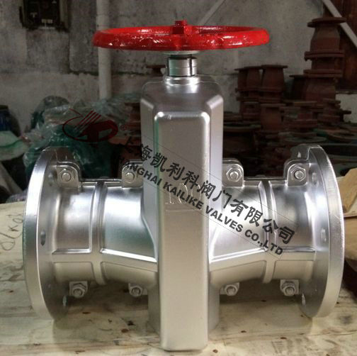 GJ41X铝合金管夹阀由上下铸铁、铝合金、不锈钢阀体,橡胶管套、大小阀杆闸板、上下导柱等零件组成。当顺转手轮时,使大小阀杆同时带动上下茬板、压缩管套、进行关闭,反之即行开启。这样,闸板在导柱之间上下往复完成阀门开闭工作,另因橡胶管套或承力小,所以在开闭时,操作人员旋转轮时只要感到适量抵触,均达到开闭极点。切勿尽力多人补助,禁用其他工具开闭。
