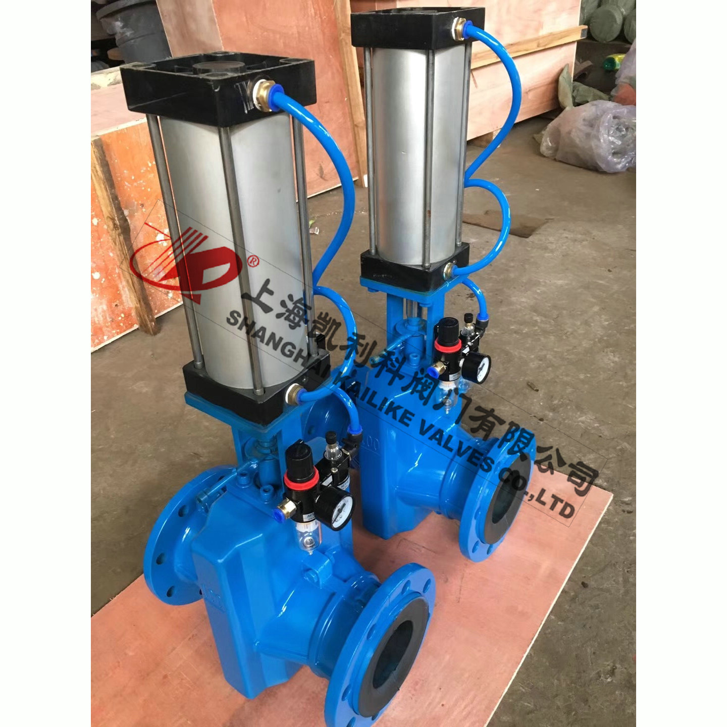 GJ6K41X常开型气动管夹阀可为常开型、常闭型,又名气动夹管阀,气动胶管阀由上下铸铁、铝合金、不锈钢阀体,橡胶管套、大小阀杆闸板、上下导柱等零件组成。当顺转手轮时,使大小阀杆同时带动上下茬板、压缩管套、进行关闭,反之即行开启。这样,闸板在导柱之间上下往复完成阀门开闭工作,另因橡胶管套或承力小,所以在开闭时,操作人员旋转轮时只要感到适量抵触,均达到开闭极点。切勿尽力多人补助,禁用其他工具开闭。