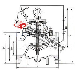 100D定水位阀是一种隔膜式调节水箱和水塔液面高度的阀门。阀门由浮球控制,当液面达到设定高度时阀门通过相关结构将信号传递给水泵,水泵停止供水;当液面低于社定位置时水泵自动启动供水。