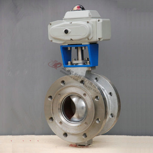电动V型球阀是球阀的一种,它的关闭件是半球体上开有V字型开口,V型开口具有锋利的刃口,在球体回转过程中,关闭件之间有擦拭作用,对介质具有强有力的切断力,球体的V型开口与阀座流道形成一个扇形区域,在回转过程中可改变流道截面积,形成对介质的精确调节,它是一种角回转的调节阀,其密封性能与普通球阀相同,使它同时具备调节和开关两种功能,与气动或电动执行器配套,广泛使用于工业过程自控系统中。