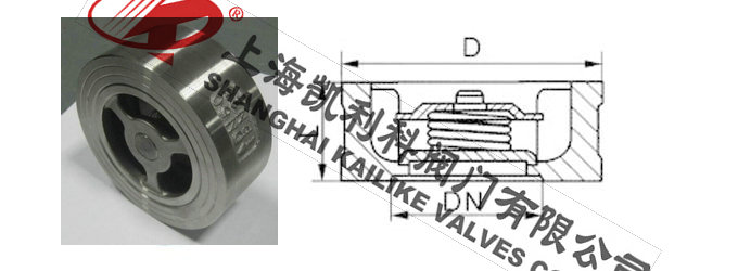 H71H、H71W对夹式止回阀该阀由阀体、阀瓣、弹簧等组成,水平或垂直安装于管路系统,防止介质倒流,具有结构短、体积小、质量轻;阀瓣关闭快速,水锤压力小;流道通畅,流体阻力小;动作灵敏,密封性能好。